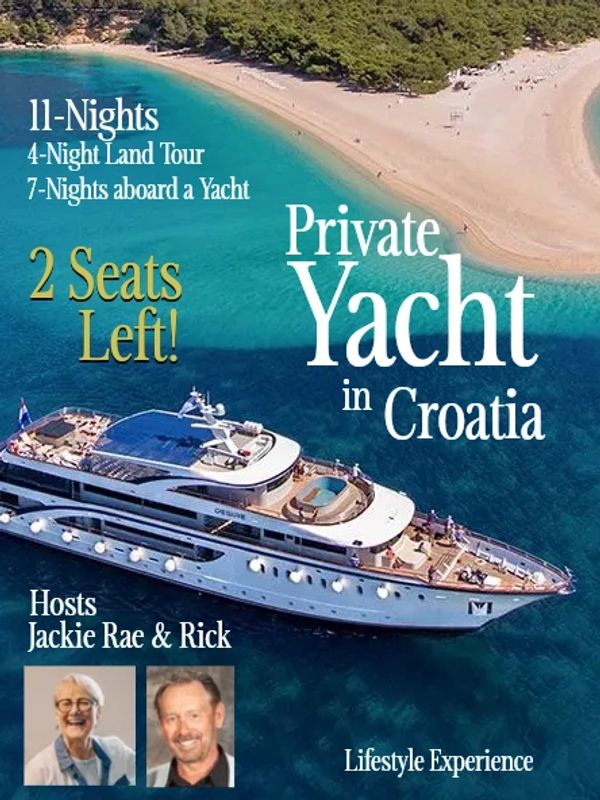 Join Jackie Rae and Rick MacSwain on an incredible summer trip sailing around Croatia exploring the Dalmatian Coastline. Travel comfortably with tastefully decorated surroundings and modern amenities onboard the luxury floating boutique hotel. Each spacious cabin features double or single beds, individually controlled AC, LCD TV, and a private ensuite bathroom with showers. Days are spent island-hopping throughout the Adriatic Sea, stopping off at pristine bays for swim stops, exploring local villages, taking beach walks, and sampling the local cuisine.